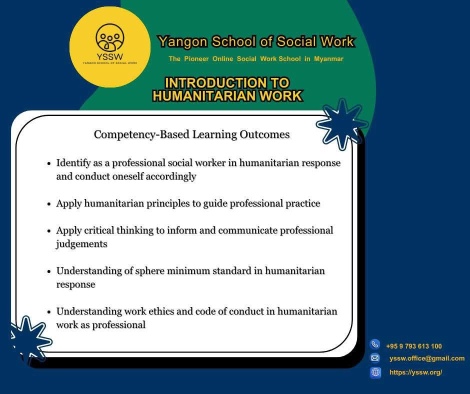 မရှာရသေးရင်တော့ YSSW ရဲ့ "Introduction to Humanitarian Work" သင်တန်းမှာ ဒီအကြောင်းတွေအားလုံးကို စနစ်တကျ လေ့လာဖို ဖိတ်ခေါ်ပါတယ်ခင်ဗျာ။ 🥰