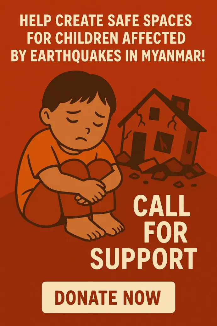 In the wake of recent devastating earthquakes across Myanmar, our communities are struggling — emotionally, physically, psychologically, and financially. Families have lost homes, livelihoods, and loved ones. And in times like these, it is *our children* — the most vulnerable among us — who are often overlooked.