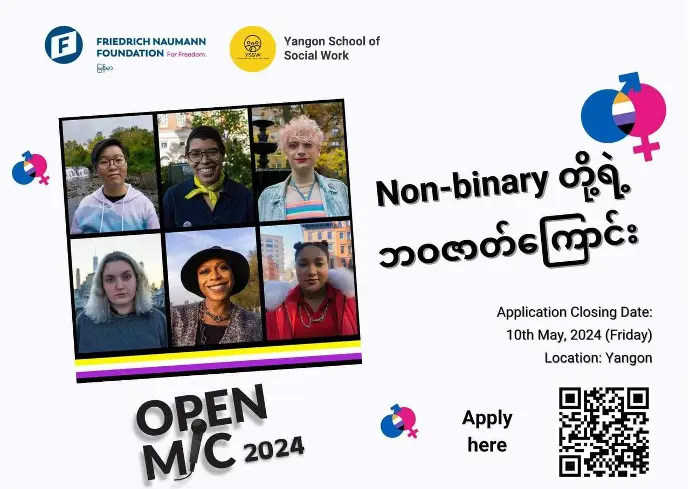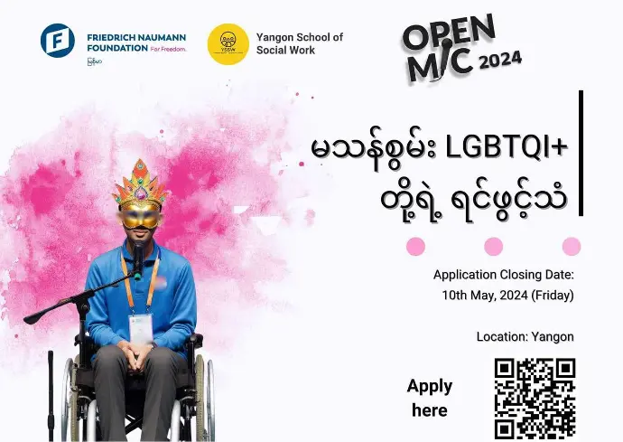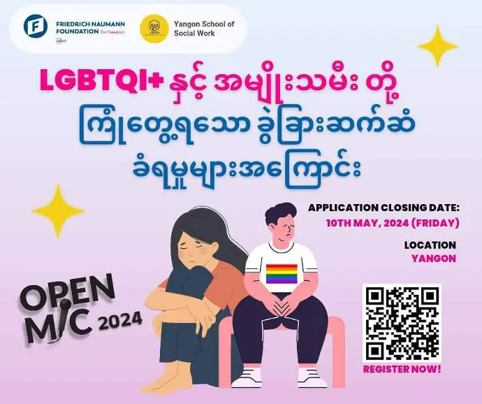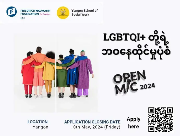 ဒါကြောင့် သင်ဟာ LGBTQI+ တို့ရဲ့ဘဝနေထိုင်မှု ကို ထုတ်ဖော် ပြောဆိုချင်တယ်ဆိုရင်တော့ OpenMic 2024 က စောင့်ကြိုနေပါပြီ။