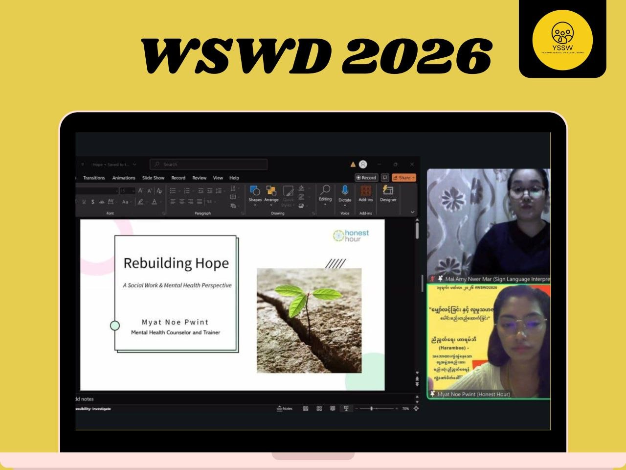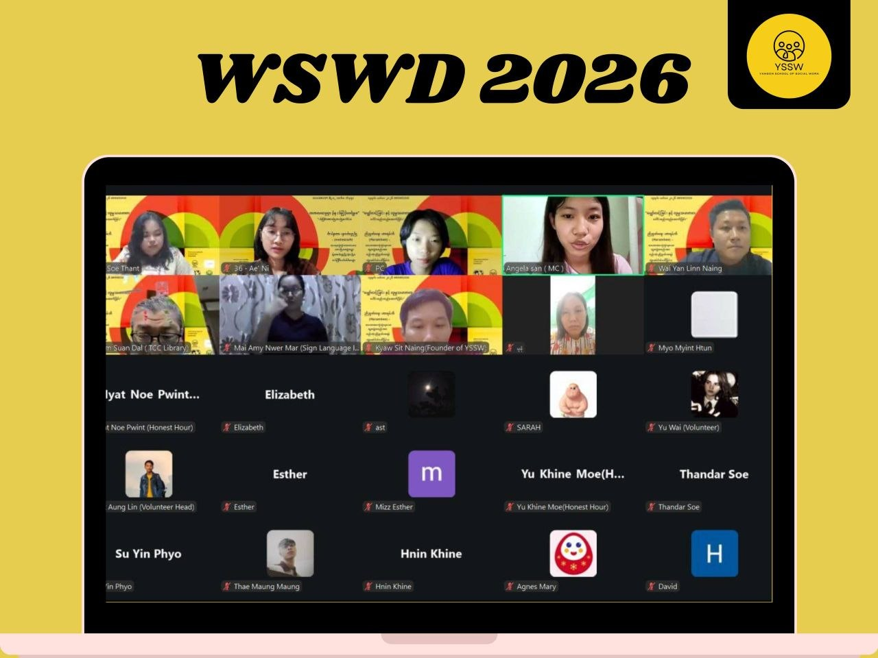 World Social Work Day 2026 ရဲ့ online အစီအစဉ်ကို မတ်လ ၂၁ရက်နေ့၊ ၂၀၂၆ ခုနှစ်မှာ အောင်မြင်စွာ ကျင်းပနိုင်ခဲ့ပါတယ်။
